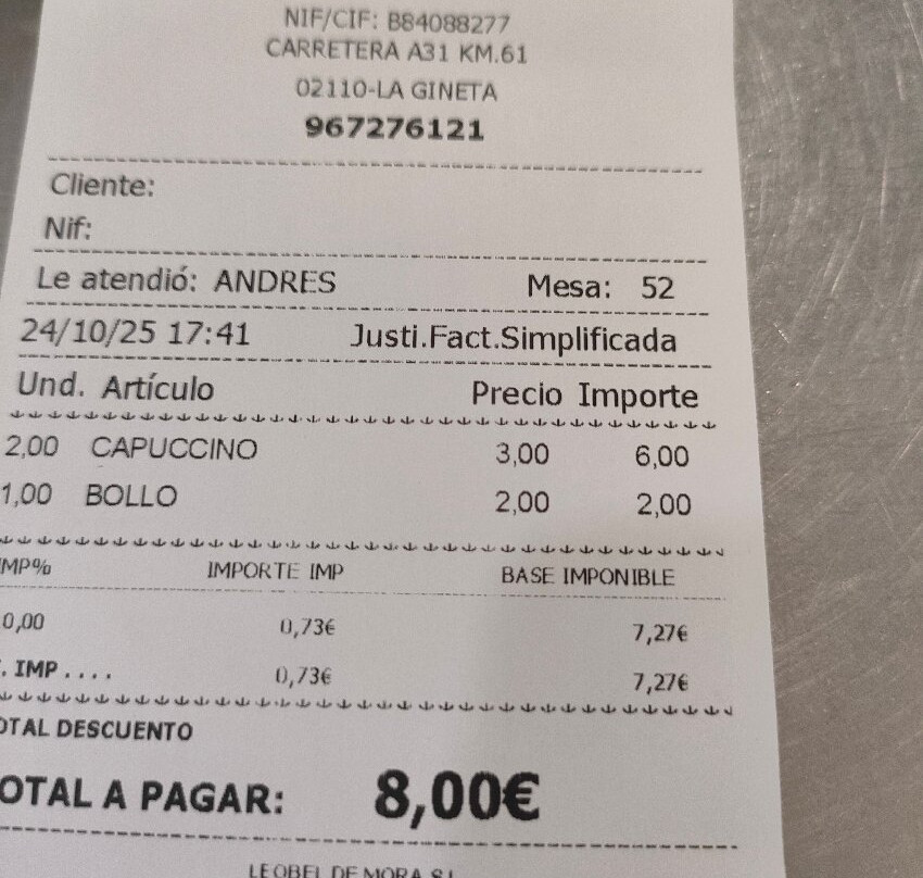 La Gineta排名第 3 的餐厅(共 8 个)