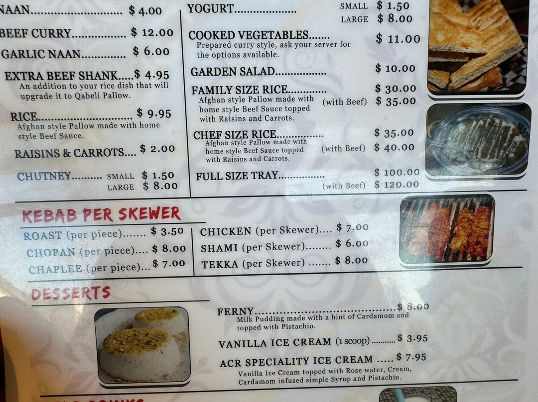 ¥¥ - ¥¥¥,阿富汗菜,阿拉伯风味,餐厅