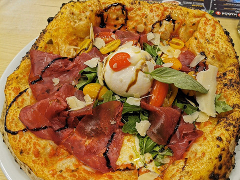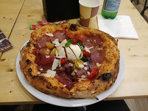 在這裡,您可以享用裝滿新鮮食材的真正披薩,並在燃木烤爐中烹製。 我們所有的產品都是現場準備的。 我們的菜單還包括意大利麵食和烤寬麵條。 對於甜點,我們有傳統的tiramissu以及奶昔和冰沙。