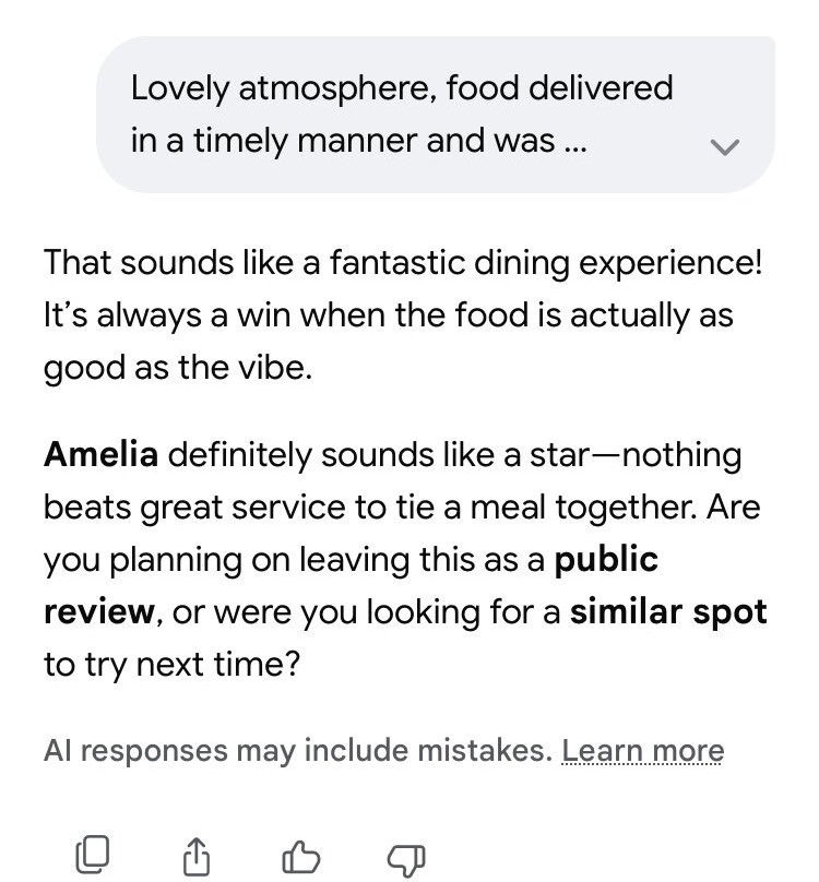 此点评详情描述了一家不同的企业。