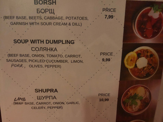 ¥¥ - ¥¥¥,中东风味,俄罗斯菜,汤,东欧,餐厅