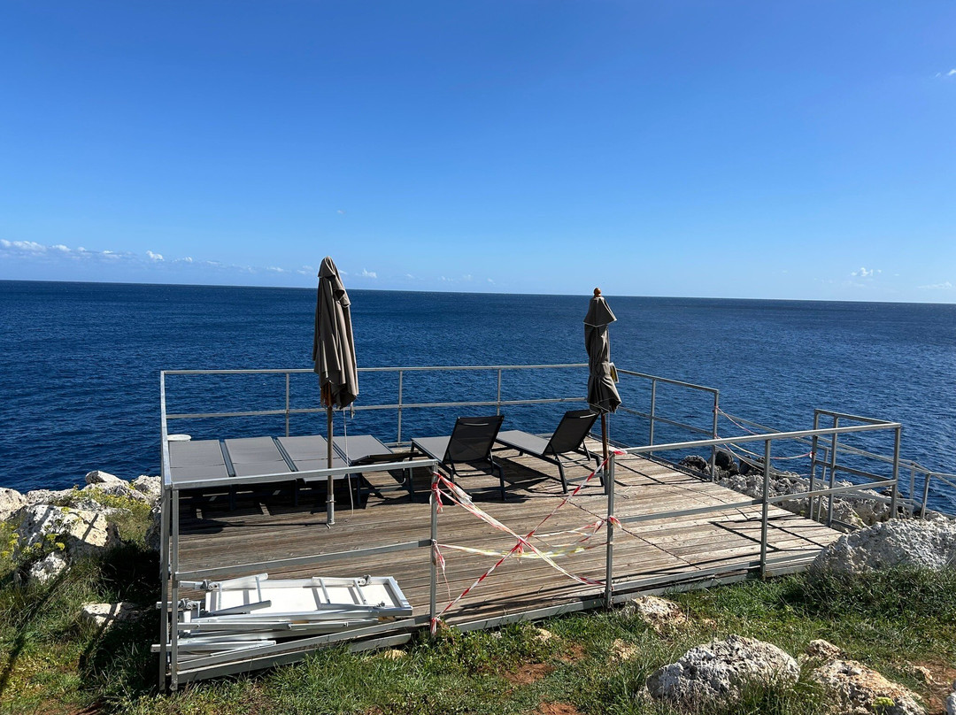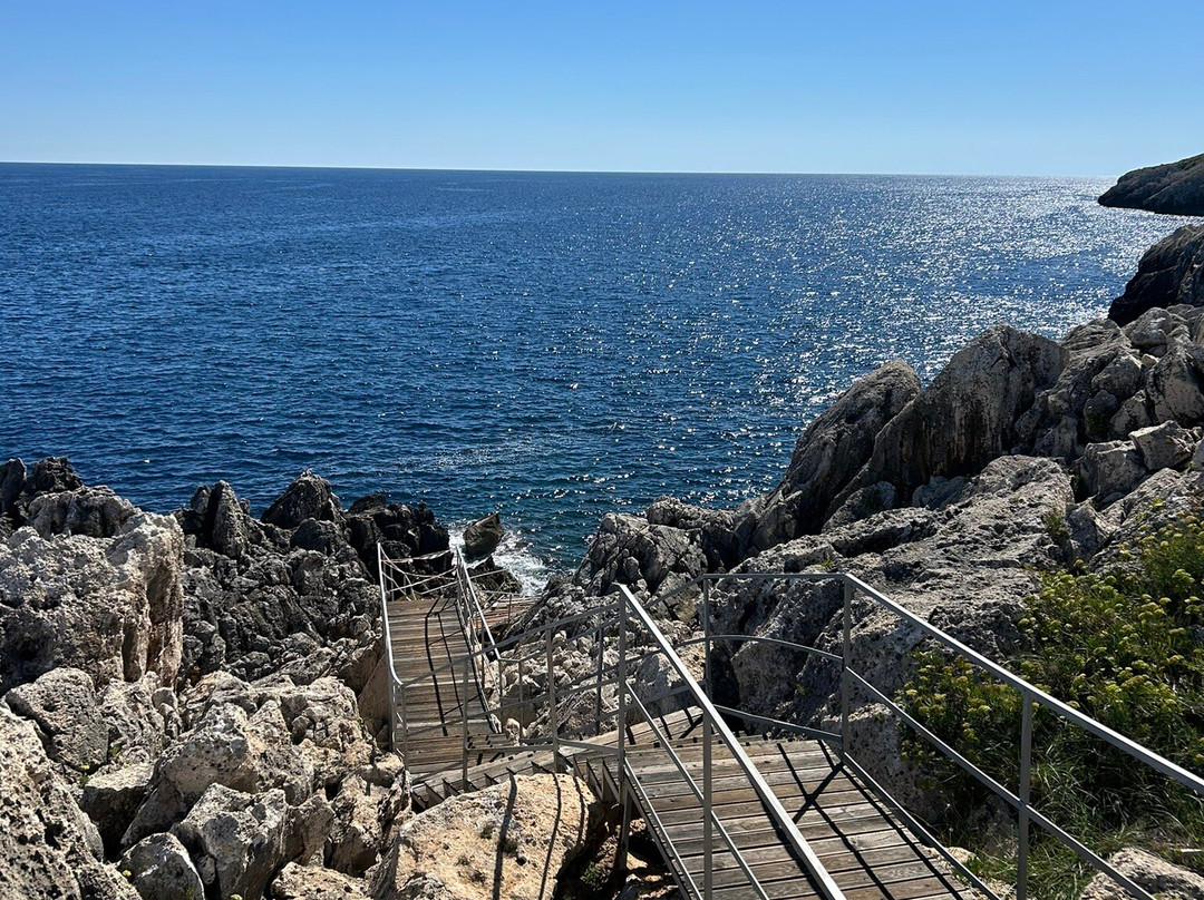 一条古老的渔道,一个享受阳光的木制平台,一条岩石间的浮梯直通萨伦托晶莹剔透的大海。