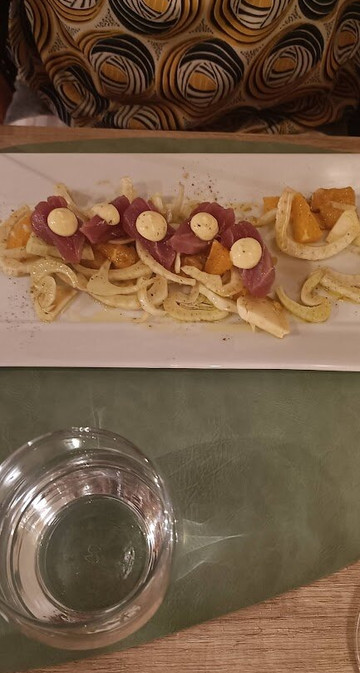 这家餐厅在佩夏已经具有历史意义,非常漂亮且典型,店主设法增强了其美学方面。但让我们来谈谈菜肴吧,我在菜单上看到他们还做 Cioncia Pesciatina,因为这道菜不仅历史悠久,而且味道浓郁,我决定选择一份要求不太高的开胃菜:porchettato 金枪鱼,还有然后是 Cioncia...确切地说。我的妻子喜欢经典菜:新鲜金枪鱼配柑橘类水果和蔬菜,以及汤团(自制)配龙虾和虾。一切都非常好,当之无愧的五星级。无可挑剔且周到的服务。
