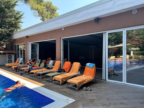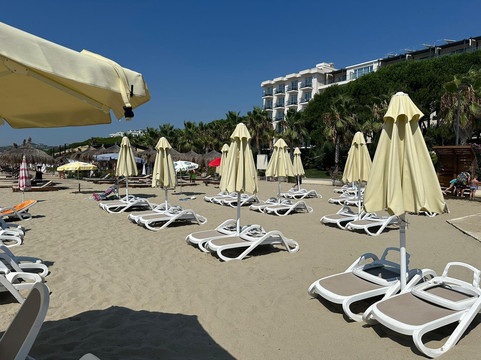 翻译:酒店的服务水平很好。工作人员很好,愿意解决一切问题。唯一的问题是并不是每个人都能说英语。房间很好,很干净,不幸的是没有阳台(烘干衣服的可能性极大地限于浴室里一个较小的加热梯子)。食物非常好(尤其是晚餐的选择很多),午餐稍差一些,但你可以选择。酒店设有 3 个游泳池,其中一个仅供成人使用。海滨长廊附近主要是酒吧和游乐场景点,缺乏大量商店。酒店附近还设有一家超市。海滩令人非常失望。大海很脏,到处都是海藻,尤其是水母。当地的救生员并不介意这个事实,他在这一周内没有试图以任何方式改变它。由于巴士必须在狭窄的街道上穿行,往返目的地的交通有时会很冒险。
