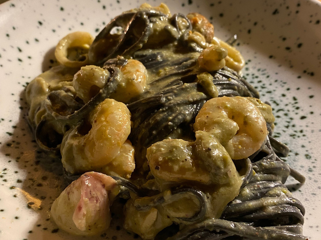 #2 Bavette al nero di seppia ai frutti di mare e pesto di pistacchio;