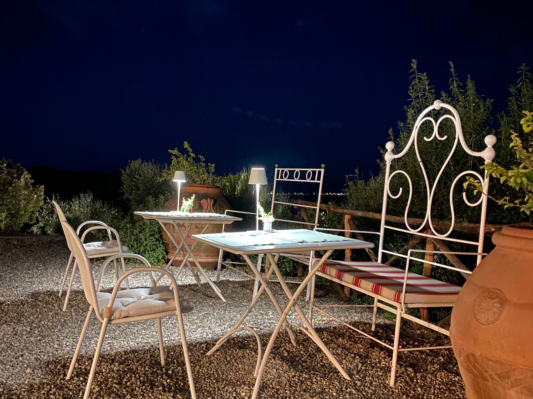 点评:Location molto suggestiva di una dimora storica attrezzata come Reails Glamping B&B ed appartamenti in piena campagna nei pressi di Scarlino. Vista studenda da questa collina che bisogna salire in una strada prima a sterro e poi leggermente asfaltata molto ripida e stretta, ma ne vale la pena. Meta da raggiungere seguendo le indicazioni per BeVedetta il cui ristorante sia chiama 'Rosso Corbezzolo'.