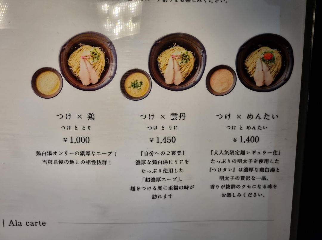 Ordering wasn't easy as you had to order from a machine and everything was written in Japanese, however one of the guys came out and explained which was which. I had my mind made up on the uni/chicken stock tsukemen even before I got there so that's what I ordered and my wife had the signature chicken ramen.