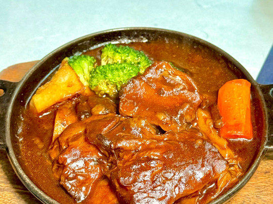 这天我们吃了招牌菜铁锅炖牛肉和炖牛舌,还有蟹肉奶油可乐饼、蔬菜沙拉、洋葱汤、牛肉饭、蒜蓉饭等全套菜。一切都是精心准备的,我对浓酱汁的浓郁和食材的柔软印象特别深刻。