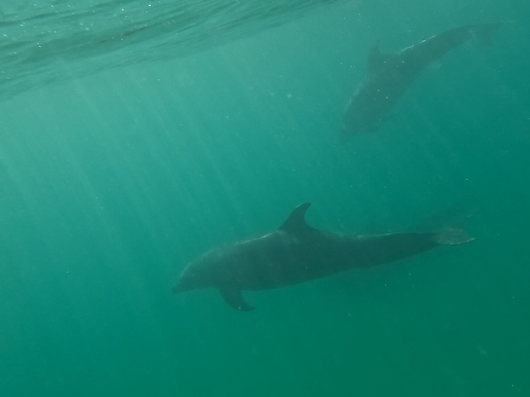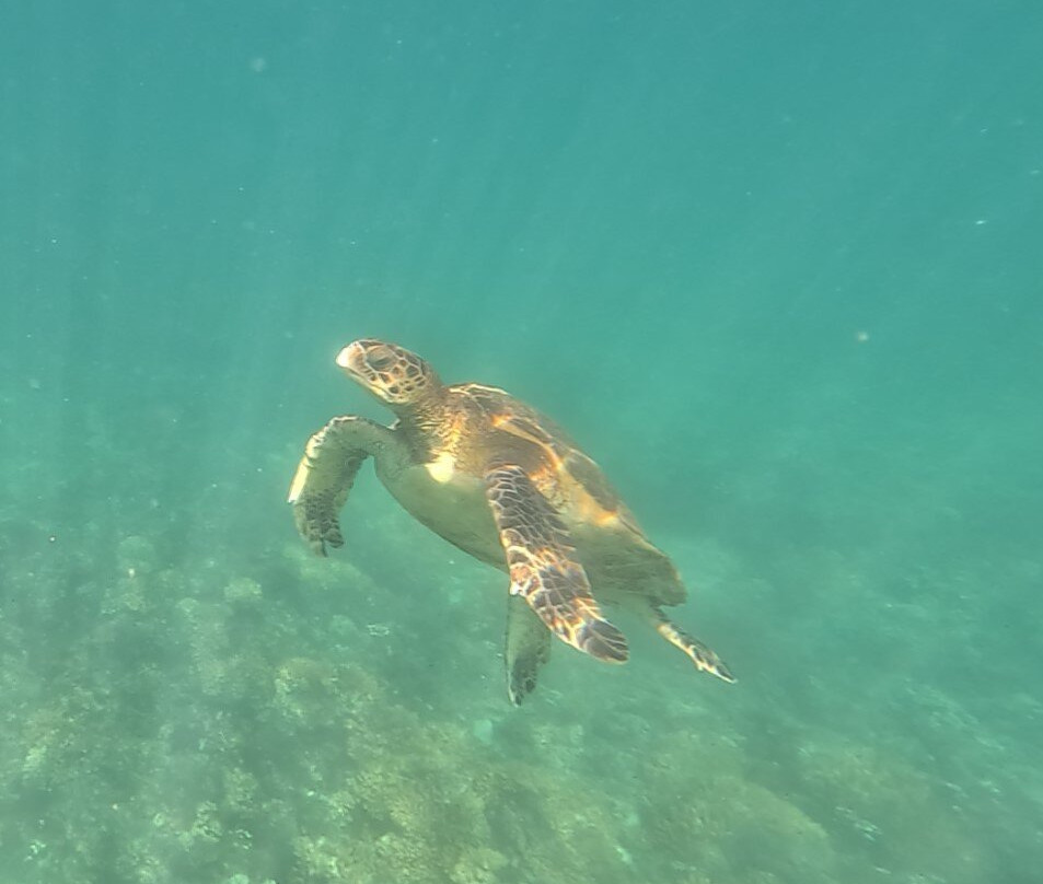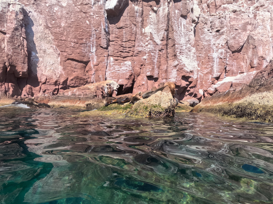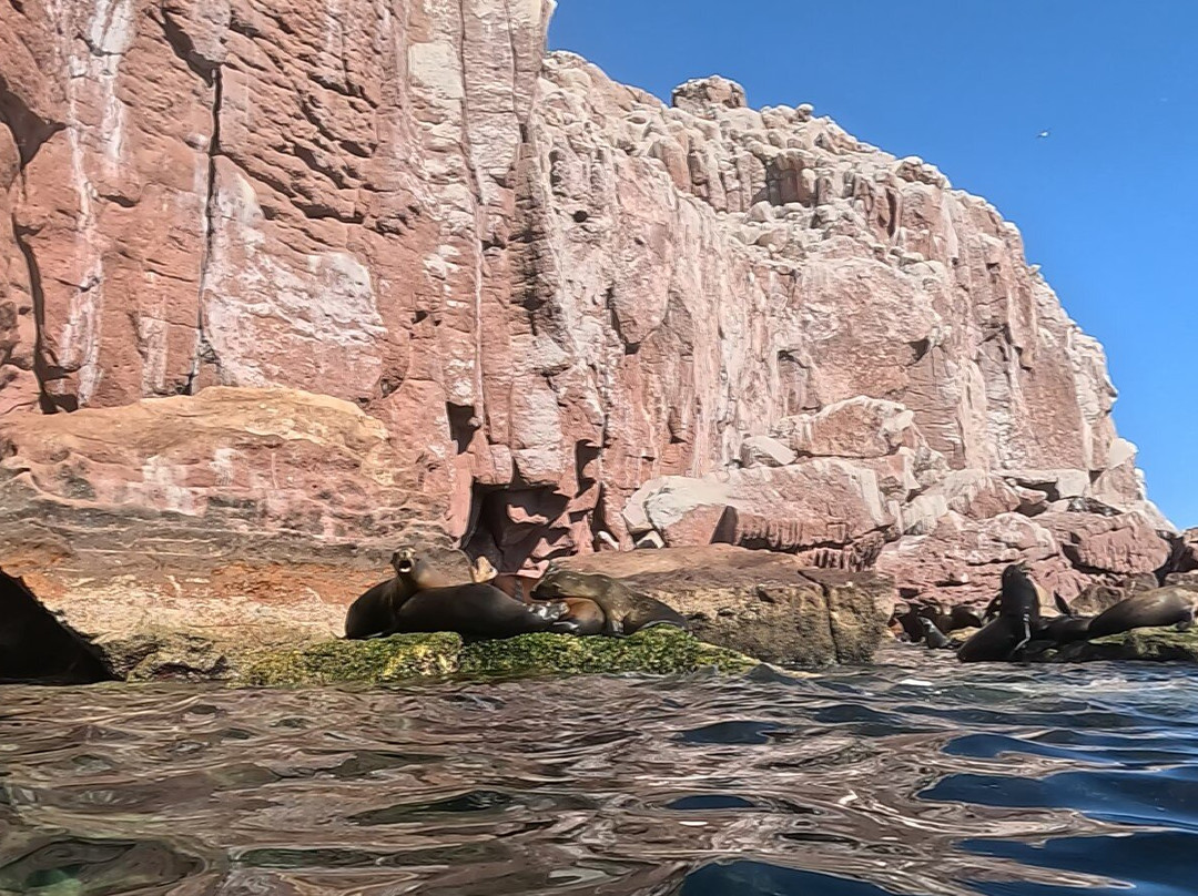 在前往海狮聚居地的路上,我们看到了海豚和蝠鲼。与海狮一起浮潜是一次很棒的经历。好奇的小家伙们非常可爱!
