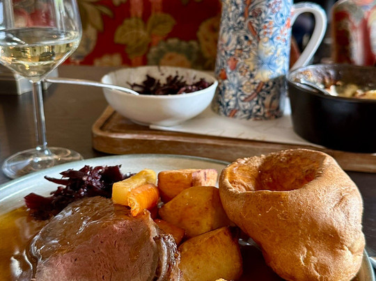 两次都是周日,周日午餐菜单非常完美。烤牛肉和烤火鸡午餐的菜品非常美味,份量也很足。我很喜欢桌上摆放着一大壶肉汁,还有几碗蔬菜,方便您随意取用。