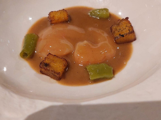菜单准备得非常充分并且经过深思熟虑。他们做的是巴斯克地区-厄瓜多尔-拉里奥哈融合菜,因为老板是巴斯克人,老板(和老板的妻子或女朋友)是厄瓜多尔人,餐厅在洛格罗尼奥,所以在他们推出的三批开胃菜中,首先带来巴斯克地区的菜肴,然后是厄瓜多尔的菜肴,最后是拉里奥哈的菜肴。