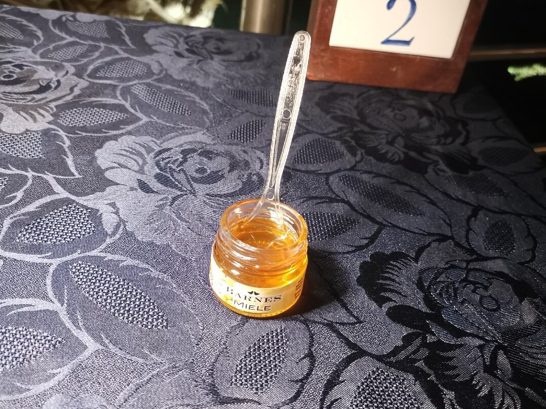 Il tagliere é arrivato ma senza pane e senza marmellate. Abbiamo quindi chiesto di portare quel che mancava ma ci è arrivato un barattolino di miele con un cucchiaio di plastica dentro: ' marmellate sono finite ma con i formaggi il miele va bene lo stesso' (testuali parole del cameriere). Ovviamente nessuno ci aveva detto che le marmellate erano finite.