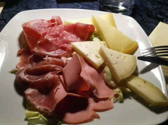 Abbiamo quindi rimandato indietro il Piatto e atteso l'antipasto (tagliere di salumi e formaggi e marmellate)