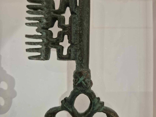 Suit une exposition sur le thème du sacré et du profane, avec des objets permettant la communication ente l’humain et les dieux. J’y ai surtout remarqué une pintadera : un sceau aux motifs religieux utilisé pour marquer les gâteaux et le pain cuits dans le four communal afin de les reconnaître.