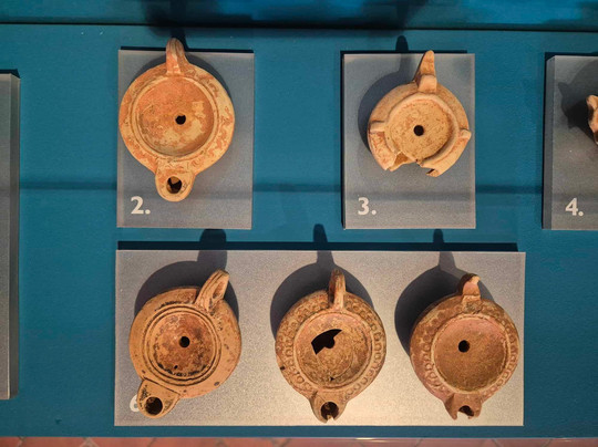 然后,我们进入包含博物馆明星的房间:1926 年发现的海洋马赛克。在中央,海洋神在这片巨大的地板上占据着重要的位置。不幸的是,时间已经造成了损失,但主要的东西却被保留了下来。屏幕上解释了其底部的拉丁铭文。博物馆摄影做得很好。在背景中,沼泽的图像作为一个场景,前面展示着一艘装满双耳瓶的旧船。有几个陈列柜,里面装有油灯和硬币。在入口处,一定要停在半身像前,特别是哈德良和阿格里皮娜的半身像。