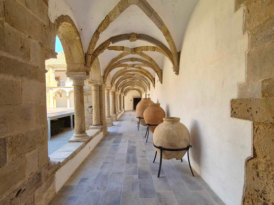 从参观开始,精美的阿苏莱霍十字架就呈现在游客面前。它的历史可以追溯到 18 世纪。参观在回廊中继续进行。展出了一些尺寸令人印象深刻的双耳细颈瓶。您可以欣赏华丽的白色圆顶,其上有一种火焰形式的护墙。拱门很简单,白色的墙壁维护得很好,但拱心石没有保存下来。另一方面,石像鬼仍然存在。在一座古老的教堂里,唱诗班的天花板上保留着华丽的彩绘痕迹,里面有一个临时的照片展览,我觉得没什么意思,但这是我的观点,而不是绝对的。