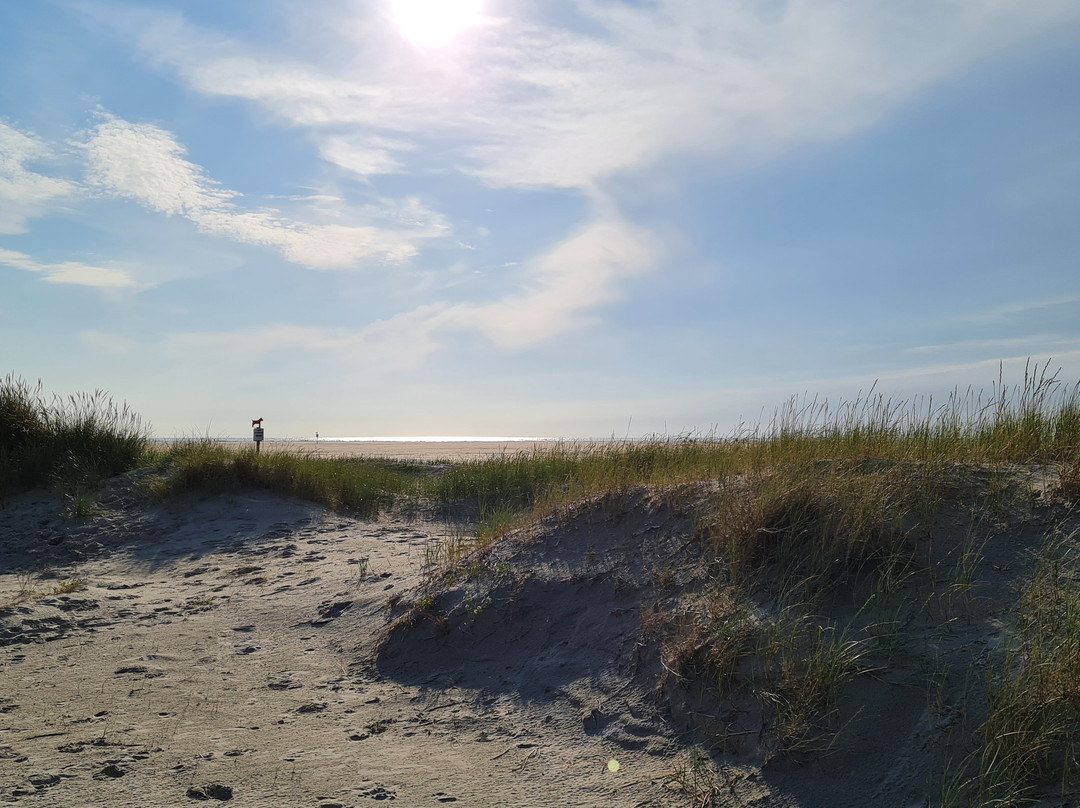 海滩很可爱——又长又宽,有沙丘草、贝壳、螃蟹等——还有沙子和泥土。还开展风筝冲浪和在封锁区域驾驶越野车等体育活动。