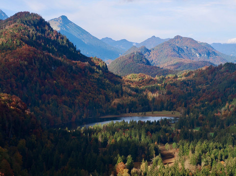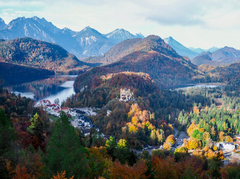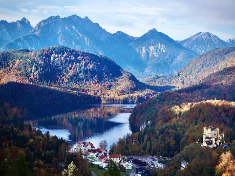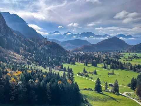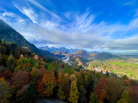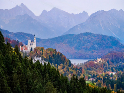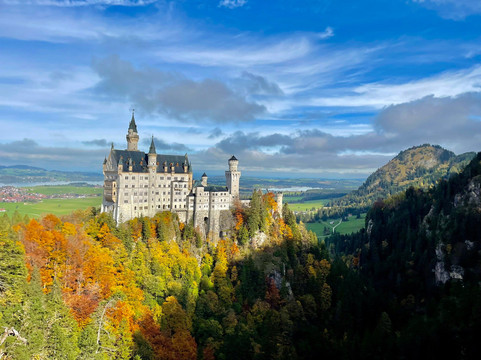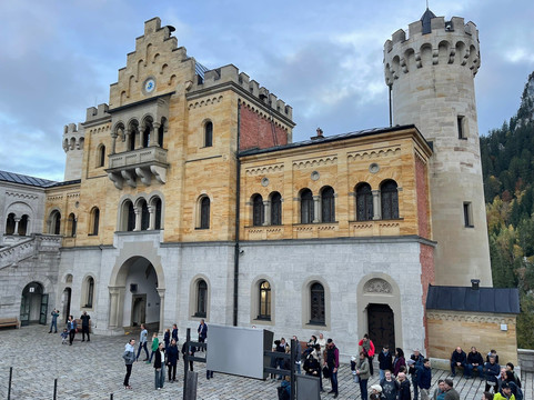 举世闻名的新天鹅堡最近被列为世界遗产,这是我们此行的主要原因。然而,这并不是我们唯一参观的地方。我们在城堡下方的霍恩施旺高镇住了两晚。我们漫步在这座小镇上,我们沿着附近的阿尔卑斯湖畔徒步旅行,探索了施万湖附近的森林和草地。所有这些在我们到达的当天下午就完成了。这些景点提供了欣赏城堡的不同视角,并有助于将其与远处的巴伐利亚阿尔卑斯山联系起来。第二天早上,我们专门花了大约 4 个小时游览新天鹅堡。这包括徒步登上城堡,参加游览,从桥(玛丽安桥)上欣赏城堡和周边地区的景色,然后徒步下山。之后我们开车去了附近的泰格尔贝格滑雪场,在山脚下吃了午饭,然后乘坐空中缆车到达山顶。之后我们徒步下山到泰格尔贝格缆车的停车场。从这里我们可以看到更多新天鹅堡的美景和不同的视角。在泰格尔贝格和施万湖,我们欣赏到了没有拥挤人群的城堡景色,被森林覆盖的山坡所包围,高耸的城堡显得格外矮小,这给我们留下了深刻的印象。