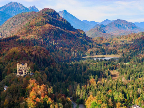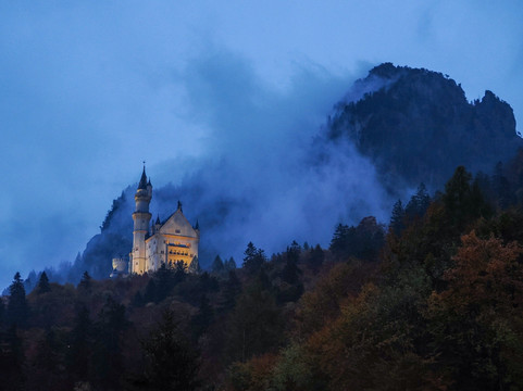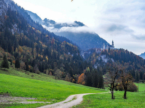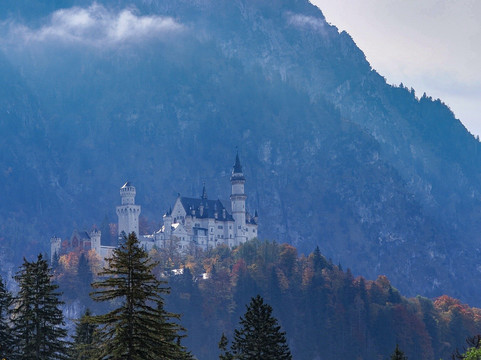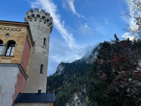我们很幸运,在……的几天里天气都很好。霍恩施旺高。清晨阴云密布,城堡短暂地被薄雾笼罩。即便如此,这也为这个地方增添了神秘的美感。