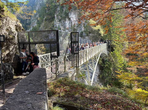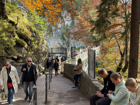 如果可以的话,我建议您选择上午10点或上午晚些时候的时间段参观城堡,但仍然要尽早到达,比如提前2小时。这样做的原因——除了需要时间从城里前往城堡之外——是因为我建议您先参观玛丽亚桥(Marienbrücke),欣赏城堡的经典景色。参观结束后,我们前往桥上,但发现桥上已经挤满了人,很难欣赏到美景。我原本也想去另一边欣赏新天鹅堡的更多景色,但为了避免人潮拥挤,我决定不去。