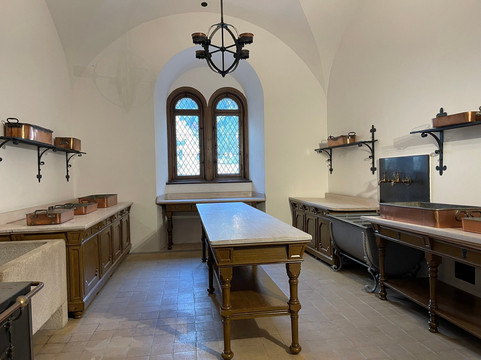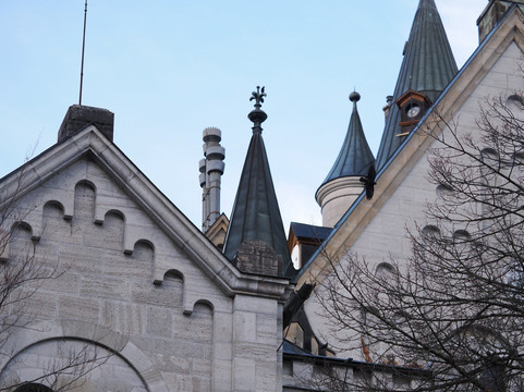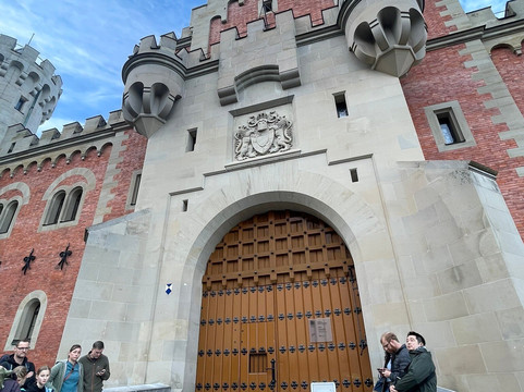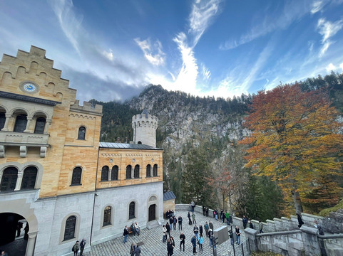 这次的游览体验绝对带有工业风,这又一次与迪士尼的联系,尽管这种联系并不那么令人愉快。而且城堡内部的照片是严格禁止拍摄的!对于像我这样的摄影爱好者来说,这真是令人沮丧。入场后,我们拿起语音导游器,继续穿过城堡,语音提示引导我们前进,城堡工作人员引导游客不断前行。他们还反复强调“不许拍照!”的口号。30分钟的游览只带你参观14个房间,但这些房间绝对值得一看。最初的计划似乎是建造200个房间,但只有这些房间完工了。其中,王座室最令人印象深刻,让人联想到拜占庭教堂。最奇特的是洞穴或石窟,一个充满水的房间,里面有假的石笋和钟乳石。它曾经甚至还有一个小瀑布。说到水景,新天鹅堡拥有当时先进的管道设施,包括流动的温水/热水和冲水马桶。