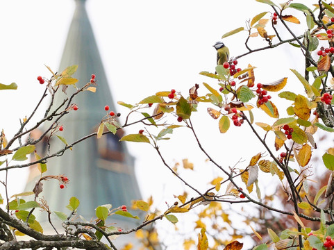 过去几年,我们一直是鸟类爱好者,因此留意着当地的鸟类。无数的寒鸦在头顶飞过,栖息在城堡的塔楼和屋顶上。苍头燕雀、煤山雀、欧亚蓝山雀、高山山鸦、欧亚山雀和欧洲知更鸟在树丛和灌木丛中忙碌地觅食。