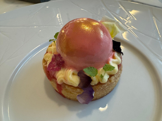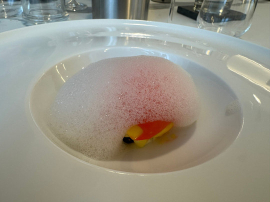 芒果半冻冰淇淋搭配薄荷和酸橙泡沫以及水果味,新鲜又原汁原味,是晚餐的完美收尾。