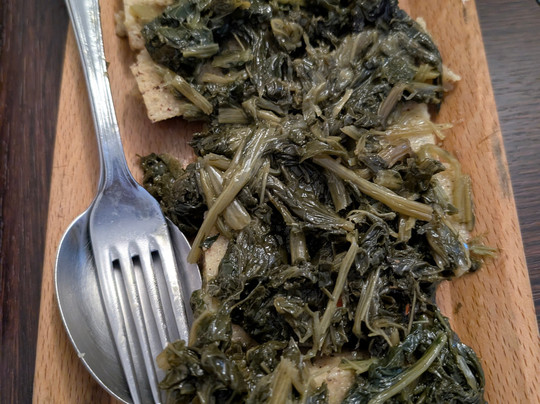 Le polente sono super, da assaggiare il fondamento della tradizione abruzzese, la versione "rognosa", piatto tipico e “faticoso” della tradizione culinaria di Pettorano sul Gizio (AQ), uno dei Borghi più Belli d’Italia. Molto buoni anche gli antipasti caldi e freddi, tra cui la coratella di agnello, del cavolo stufato con ricotta, zuppetta di fagioli e funghi, pallotte cacio e ova che si sciolgono in bocca, crustole (ciambelline di pasta fritta cresciuta) con verdure.