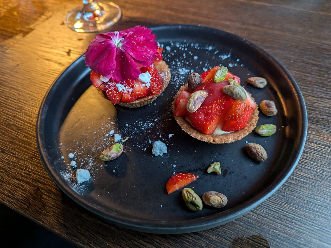 The strawberry tart desert was tasty and fresh, with perfectly ripe strawberries and well made pastry.