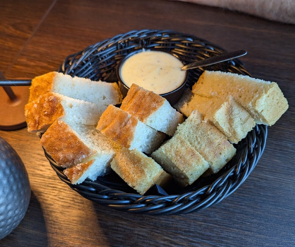 内里牛排的烹饪方式完全符合我的喜好,上面的蒜蓉黄油也非常合适。所有的配菜都与肉很搭,整道菜相当令人满意。我要说的是,他们上菜时没有配合适的牛排刀,这是他们应该改进的地方,因为这样切起来会容易得多。