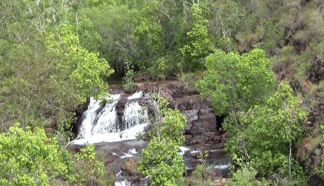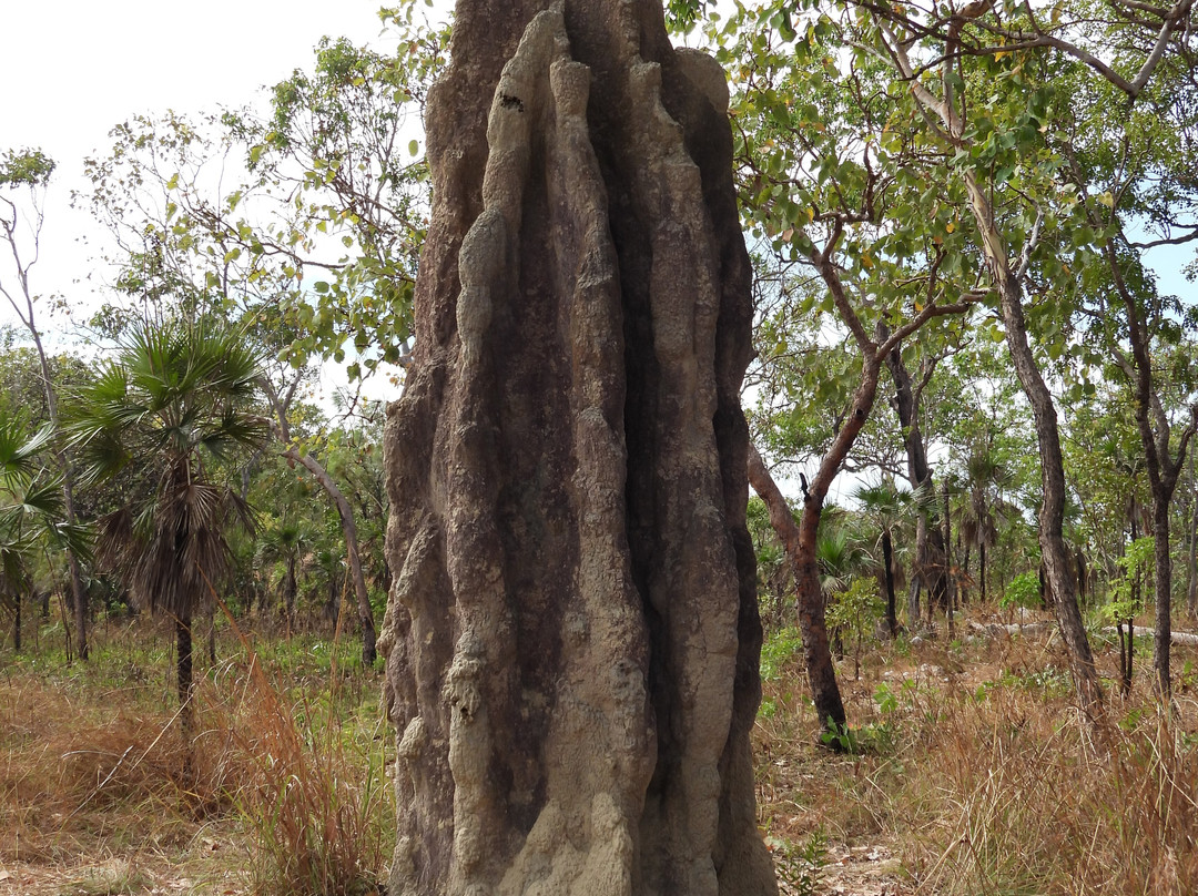 翻译:我们看到的是干旱地区美丽的地形,蜿蜒的小溪造就了许多美丽的瀑布。半干旱类型的植被混合了单子叶植物和双子叶植物,某些地区出现了棕榈树。似乎周期性的丛林火灾烧毁了灌木丛。一些地区有巨大的白蚁丘,被称为大教堂白蚁丘和磁性白蚁丘。后者处于湿地氛围中,形状显眼,两面平坦,朝东和朝西。我们享受着许多小溪中流淌的清澈水,这些水形成了足够深的游泳池,可以游泳。我们看到的瀑布是 Florence、Wangi 和 Berry 泉,它们非常迷人,水源充足,显然是雨季渗入土壤结构下层海绵层的水。我们有机会在三个不同的地方洗澡,其中一个是一条小溪流过严重侵蚀的岩石表面,最后流入一个名为 Buley Rock 洞的水池。利奇菲尔德国家公园有很多事情可做、可看。