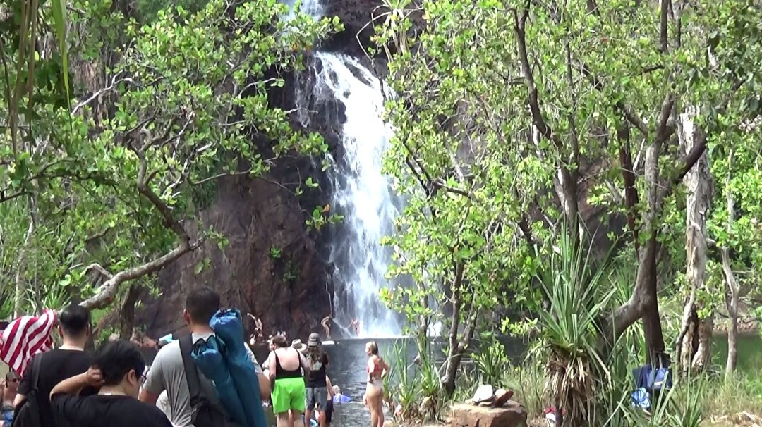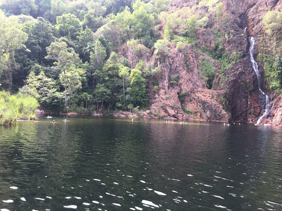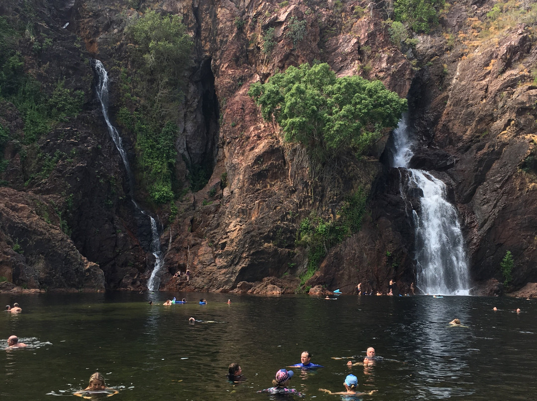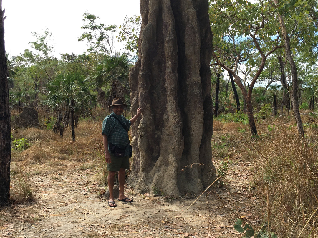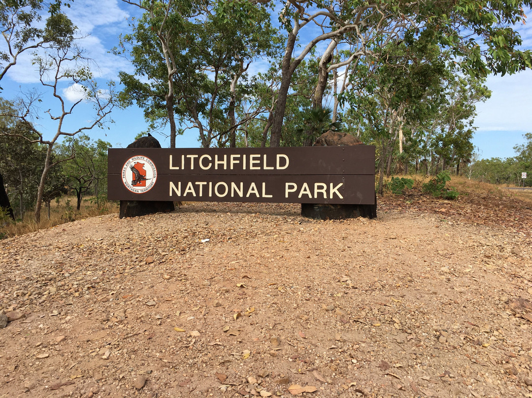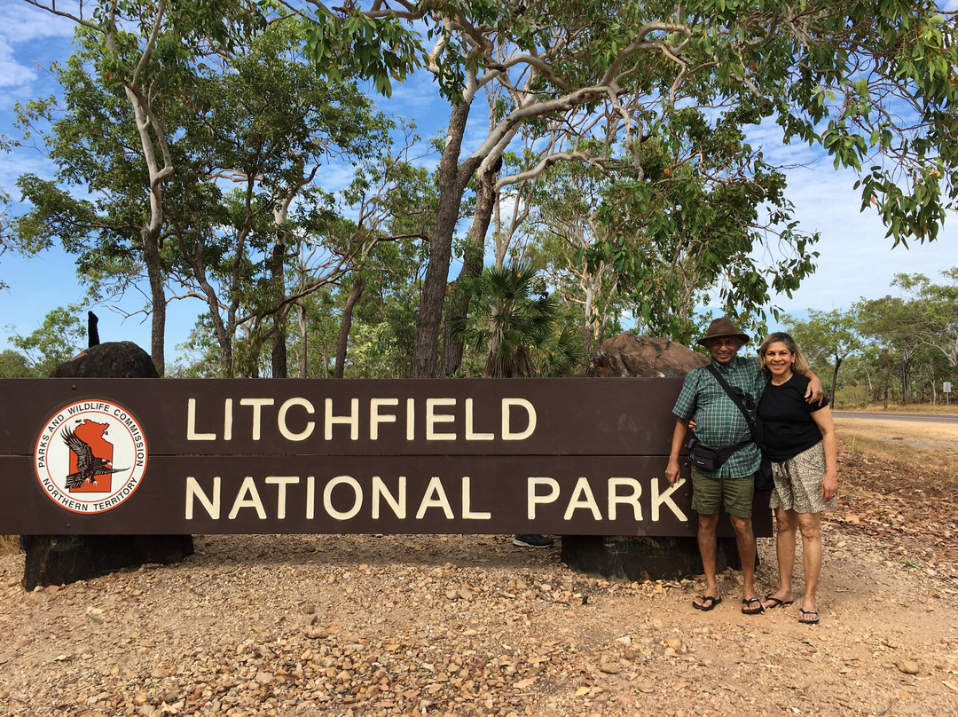 点评:What we saw was the beautiful terrain in a dry region, dressed with many beautiful falls created by meandering creeks. Semi-arid type vegetation with a mix of monocots and dicots have spread with types of palms emerging in certain areas. It appeared that periodic bush fires have burnt off undergrowth. Some areas had massive termite mounds known as Cathedral termite mounds and Magnetic Termite Mounds. The latter were in wetland atmosphere and had a conspicuous shape and built with two flat sides facing East and West. We enjoyed the pristine clear water flowing in many creeks forming pools deep enough for swimming. The water falls that we saw were Florence, Wangi, and Berry springs and they were very attractive and well fed with apparently the seepage of water absorbed into the lower spongy layers of the soil structure during the rainy season. We got the opportunity of bathing at three different spots of which, one was a flowing creek over a highly eroded rock surface finally cascading into a pool named Buley Rock hole. There were plenty of things to do and to see at Litchfield National Park.