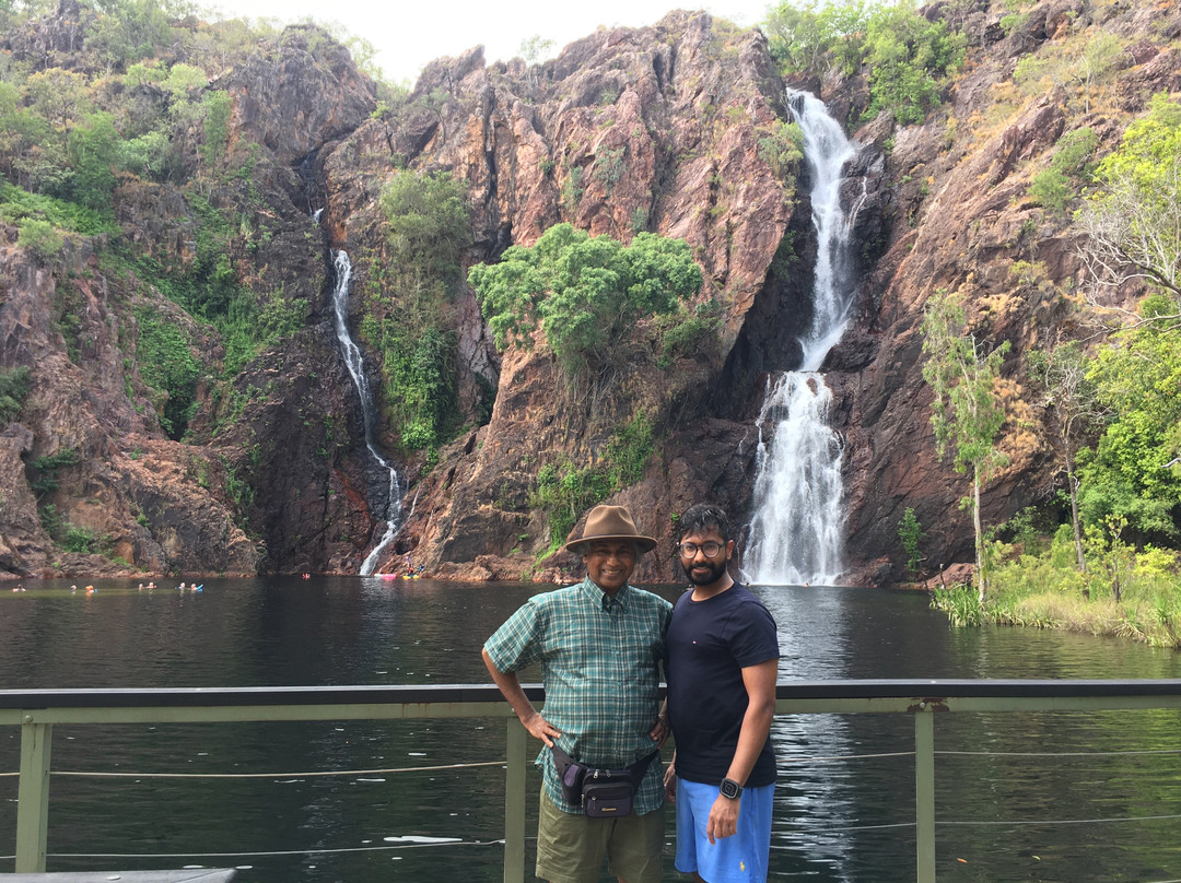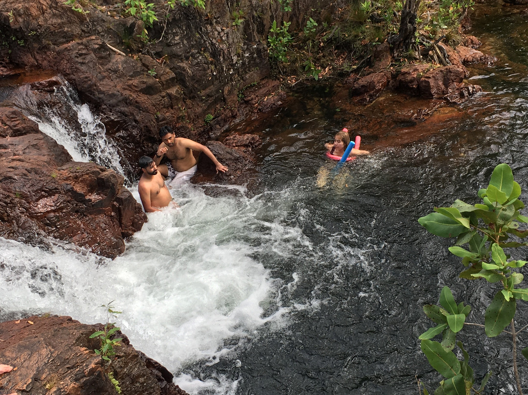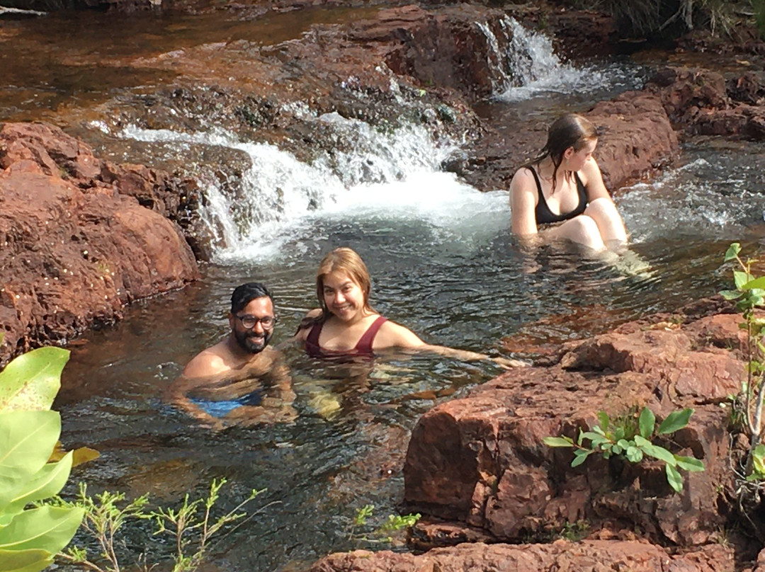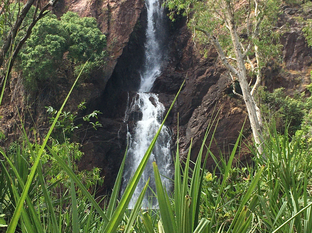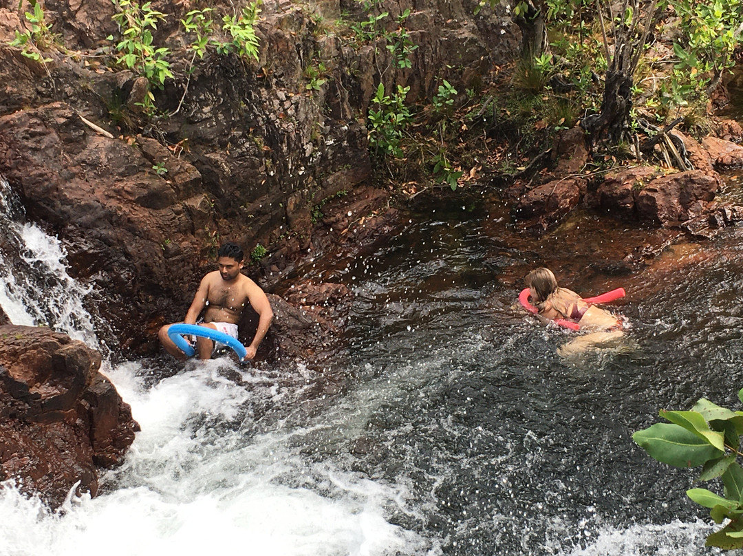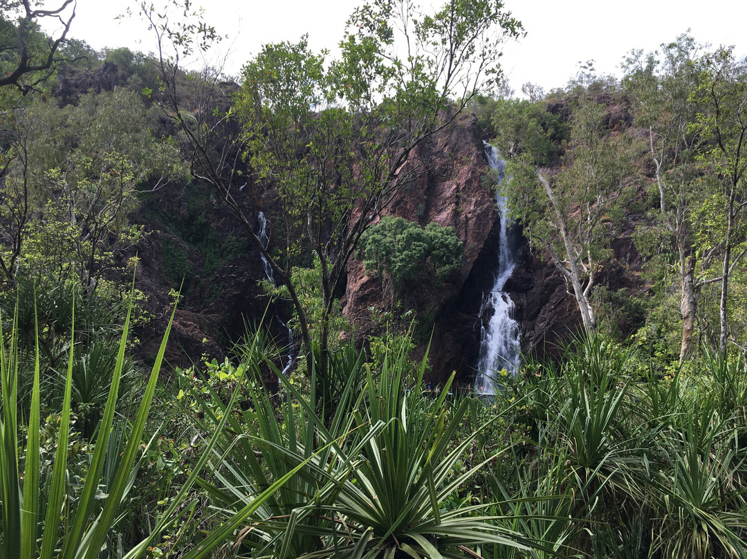 点评:What we saw was the beautiful terrain in a dry region, dressed with many beautiful falls created by meandering creeks. Semi-arid type vegetation with a mix of monocots and dicots have spread with types of palms emerging in certain areas. It appeared that periodic bush fires have burnt off undergrowth. Some areas had massive termite mounds known as Cathedral termite mounds and Magnetic Termite Mounds. The latter were in wetland atmosphere and had a conspicuous shape and built with two flat sides facing East and West. We enjoyed the pristine clear water flowing in many creeks forming pools deep enough for swimming. The water falls that we saw were Florence, Wangi, and Berry springs and they were very attractive and well fed with apparently the seepage of water absorbed into the lower spongy layers of the soil structure during the rainy season. We got the opportunity of bathing at three different spots of which, one was a flowing creek over a highly eroded rock surface finally cascading into a pool named Buley Rock hole. There were plenty of things to do and to see at Litchfield National Park.