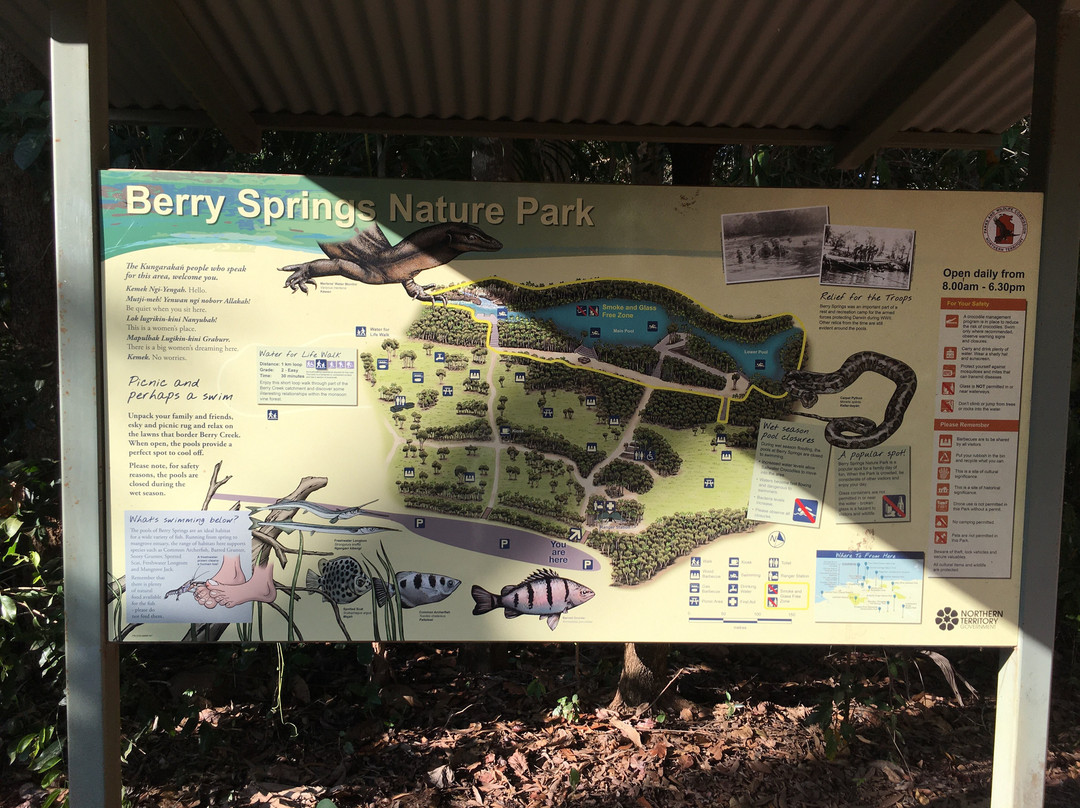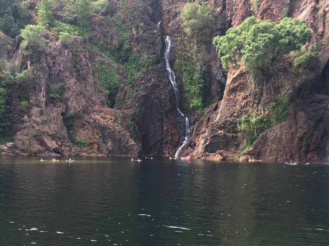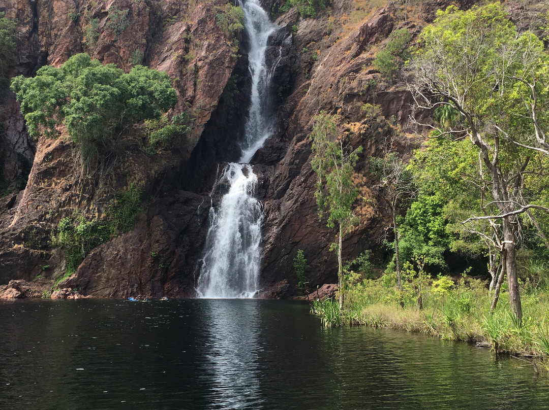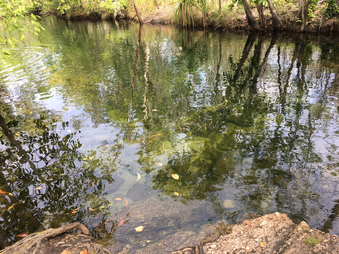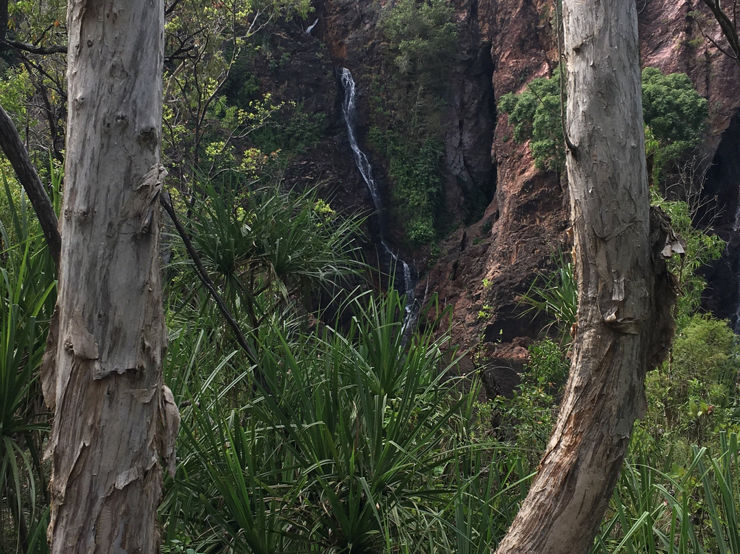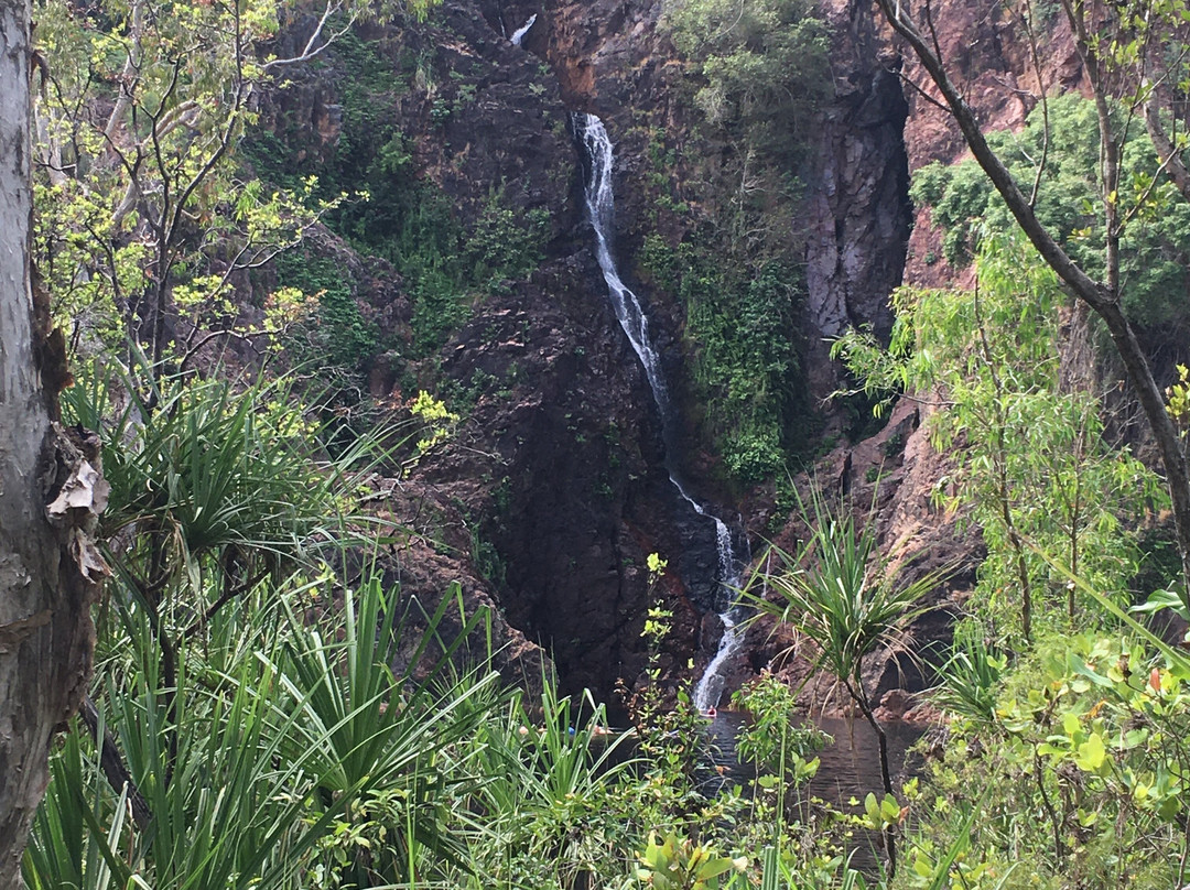 点评:What we saw was the beautiful terrain in a dry region, dressed with many beautiful falls created by meandering creeks. Semi-arid type vegetation with a mix of monocots and dicots have spread with types of palms emerging in certain areas. It appeared that periodic bush fires have burnt off undergrowth. Some areas had massive termite mounds known as Cathedral termite mounds and Magnetic Termite Mounds. The latter were in wetland atmosphere and had a conspicuous shape and built with two flat sides facing East and West. We enjoyed the pristine clear water flowing in many creeks forming pools deep enough for swimming. The water falls that we saw were Florence, Wangi, and Berry springs and they were very attractive and well fed with apparently the seepage of water absorbed into the lower spongy layers of the soil structure during the rainy season. We got the opportunity of bathing at three different spots of which, one was a flowing creek over a highly eroded rock surface finally cascading into a pool named Buley Rock hole. There were plenty of things to do and to see at Litchfield National Park.
