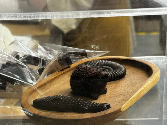 彼得是这里真正的明星——当我们坐下来等饮料时,他拿着一个漂亮的品尝板,上面有三种巧克力(真是美味!)。但不仅仅是这些——他还为每一种巧克力画了故事。“海滩上的一天”,用文字为孩子们画了巧克力的元素。他们非常投入。感受到他们的热情,他向孩子们展示了可可豆荚、豆子,以及他们在工厂里做什么……甚至给他们小茶匙直接从桶里取样(他们兴奋不已)。他还教我们了解了可可豆的各个部分(谁知道可可豆竟然能榨出美味的果汁??彼得还让我们品尝了可可豆)。