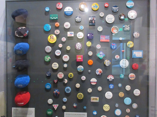 点评:I visited the recently-opened Lillian and Albert Small Capital Jewish Museum. The museum includes the Adas Israel Synagogue, built in 1876 as the first permanent Jewish house of prayer in Washington, DC. The building was moved three times and is now part of the Capital Jewish Museum. The historic synagogue is connected to a modern building, which houses most of the exhibits. Its core exhibit was interactive. In one section, you could place small wooden tokens in containers that represented ways to increase voter turnout. The instructions said that if you are a DC resident, place your tokens in the DC resident container since you can't vote on these issues! They had political yarmulkes (skull caps) and buttons. Another exhibit featured famous Washington Jews. One interactive exhibit asked the question "Who Are You?" You had to find blocks with words that describe you and then take a photo with them. (It wasn't easy finding someone to take the photo since there were only two other people in the entire museum.)