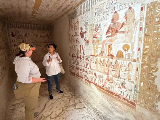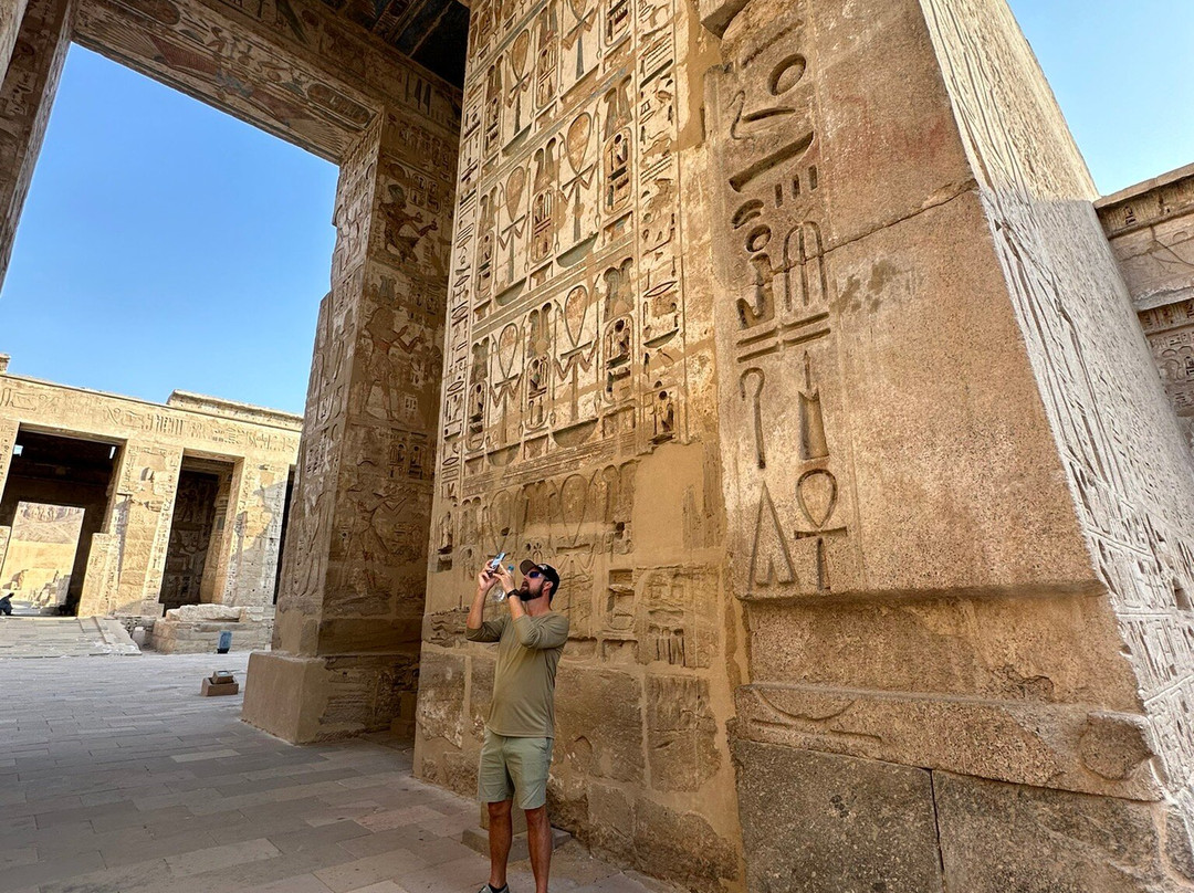 当我们到达卢克索时,我们参加了麦地那哈布、贵族谷和国王谷的一日游。在这里,我们有 Dina 作为我们的导游,Ramadan 是我们的司机。两人也都很棒。有趣的是,我们得知 Dina 和 Nohar 是同一位学校的学生,所以我们一进去就很合得来。麦地那哈布可能是我们参观过的最令人惊叹的地方之一。了解所有陵墓、寺庙和遗址的历史和传说真是太棒了。