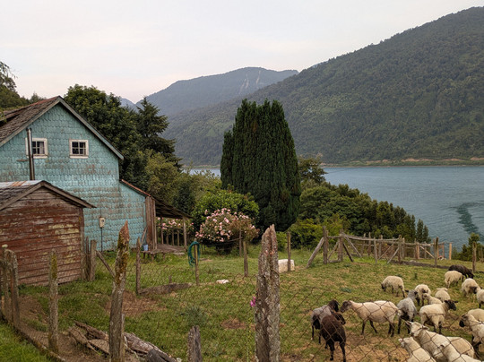 在 Yolanda 的农场过夜可能是我们在智利做的最好的事情。能够受到她的欢迎并分享一顿饭(他们养的猪的排骨真是太棒了),这是一种难以置信的荣幸。我只希望我们能说更多的西班牙语,这样我们就能更好地交流!在峡湾岸边的田野中醒来,我们看到了一群海豚。我们和他们的狗 Oso 和羊女王 Perlita 一起玩耍。我还给一只小羊喂了奶。