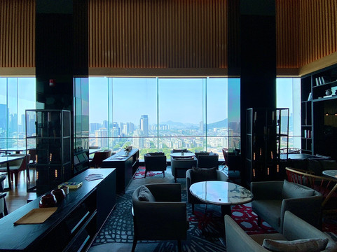 9、如果含有行政待遇的客人,16层的行政酒廊一定要去。酒廊全天供应咖啡茶饮,下午茶有甜品,happy hour的食物给的也很厚道,完全可以当晚餐来享用。整个酒廊充满各种新奇有趣的摆件,全落地窗设置,令酒廊的城市景观毫无遮挡。偷得浮生半日闲,坐在这里喝杯咖啡美好;