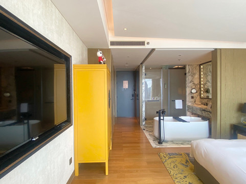 5、客房也超赞,共拥有172间宽敞舒适的客房&套房,用色跳跃,时尚新潮,客房面积45平起。硬件配置也是高品的,55英寸PHILIPS飞利浦液晶电视、科勒灵雅石卫浴、英国B&W音响以及美国SEALY丝涟床垫,这是全客房标准配置,很不错了;