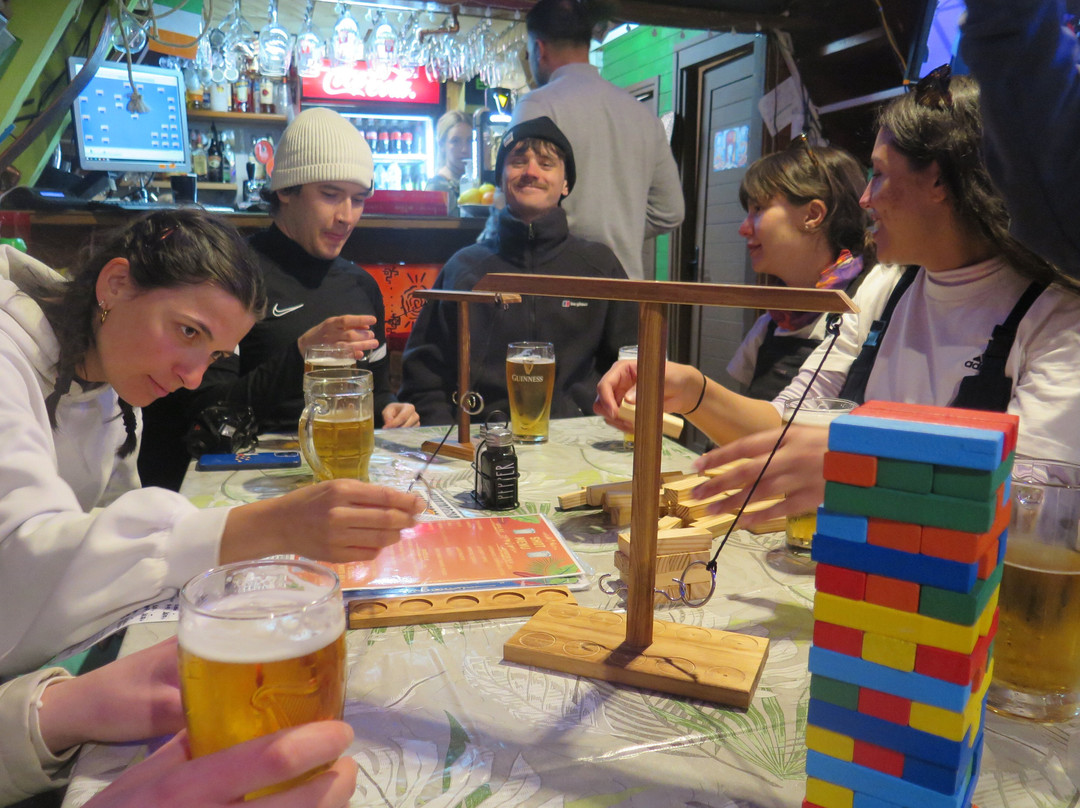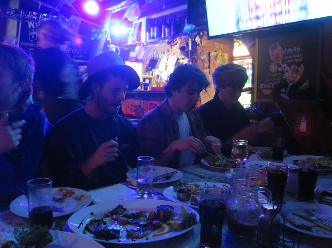 翻译:如果你滑雪后不来这里,那你打算做什么呢?这是整个博罗维茨唯一一个举办滑雪后活动的地方,但同时也是全家人聚会的地方。这里的氛围非常好,特别是如果你想要体验与英国小伙子小伙子氛围相反的氛围。我们首先被工作人员的热情和善良所打动。老实说,这是我们很长时间以来在任何地方享受到的最贴心的服务,他们几乎每天都能完美地管理我们 10 个人的团队。我们还参加了节日宴会,食物很棒,服务也很好。主厨非常灵活,满足了我们这个由肉食者、素食者和纯素食者组成的非常混杂的群体。葡萄酒源源不断,娱乐活动也非常完美。团队把 50 个陌生人聚集在一起,让我们都成为最好的朋友,这种做法真是令人难以置信。在我们建议我们团队中的 DJ 可以播放滑雪后活动后,他们还出色地找到了一台笔记本电脑和唱机。他们做好了一切准备,并建议宣传,以便人们可以尽情享受美妙的音乐。这是一个非常棒的想法,我们邀请了许多不同的团体来参加滑雪后的盛大舞蹈。这个地方就是好氛围吸引好氛围的定义,价格非常实惠,饮料和食物都很美味,我们不需要更多了。我们迫不及待地想回来。非常爱你们,在酷跑中想念你们!
