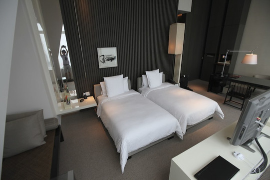 我们的客房都能俯瞰上海城市景观,视野开阔。