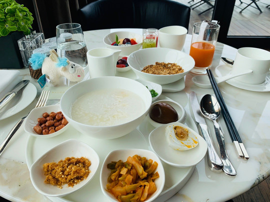 早餐。各国早餐均可选择。推荐上海风味的粥。配料多彩,齿颊留香。餐饮部Caroline🍑小姐姐,服务没的说。还会帮我凹造型拍照风景照~点赞゚∀゚d。