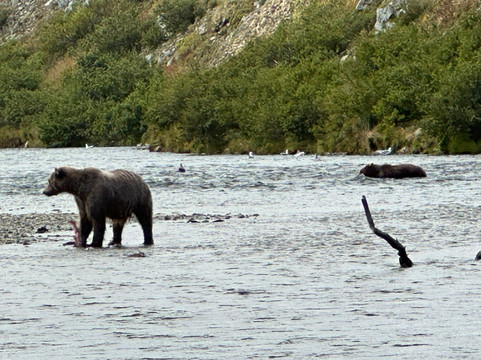 翻译:我们非常享受这次水上飞机/熊之旅。每个人都非常专业。他们为我们提供了保持温暖和舒适所需的装备。我完全信任所有负责人。飞行员很棒,在飞机上向我们展示了许多动物。从飞机上看到的景色非常壮观。那天水位有点高。所以我们没有做太多的水上行走,只是在几条溪流上走了几步。我们看到了很多熊。我们几次距离熊不到 12 英尺,可以拍到精彩的照片。一只妈妈和她的幼崽来到我们附近,找到一个舒适的地方躺下并给宝宝喂奶。那是多么奇妙的经历啊!回程的航班同样壮观,途中遇到了更多的动物。我们拍到了漂亮的照片!最后的零食也很棒!哇,那位女士会烤东西!我强烈推荐这次旅行!我迫不及待地想得到导游拍摄的照片的链接。