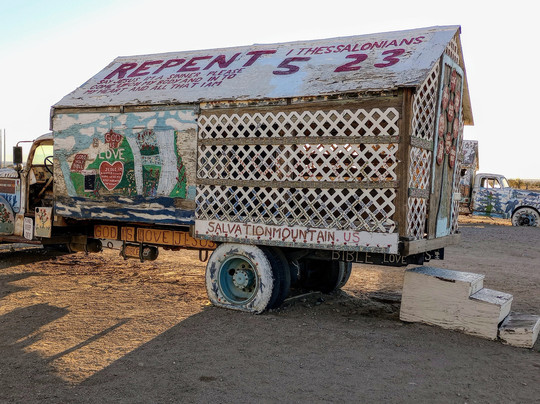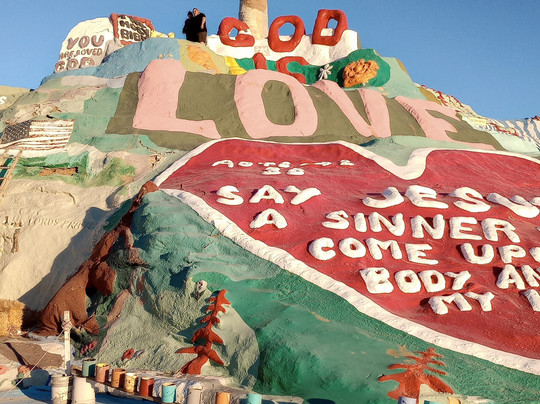 翻译:在墨西哥阿尔戈多内之旅中,我们游览了索尔顿湖。首先,我们来到一片有着最令人惊叹的艺术作品的海滩,开车穿过小区时,看到人们的梦想破灭,很难不感到难过。在东边,请绕道前往救赎山。您将受到一位知识渊博的山护林人的接待,在那里您可以看到伦纳德·奈特的愿景。然后沿着高速公路返回孟买海滩。一个独特的艺术社区,周围是一片低地。一定要在 Ski Inn 停下来喝一杯冰啤酒。这是一个历史悠久的酒吧,您可以花一个小时阅读钉在世界旅行者墙上的所有美国货币纸币。一定要走走这个充满才华横溢的艺术家的折衷社区。给自己足够的时间去探索索尔顿湖的离网艺术家!