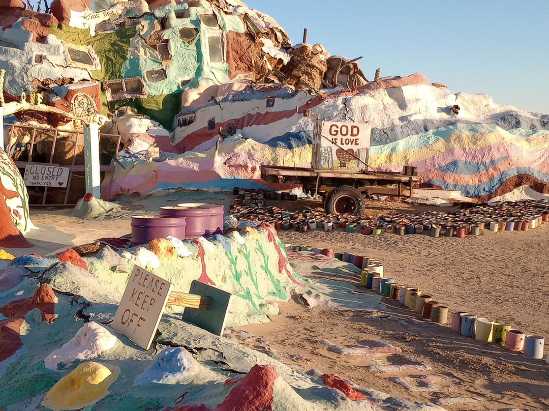 点评:On our trip to Algodone, Mexico we traveled around the Salton Sea. Firstly, we came across a beach with the most amazing art work and while driving through the subdivision it was hard not to be sad while seeing people dreams fall to the ground. On the east side please take a detour over to Salvation Mountain. You will be treated by a very knowledgeable keeper of the mountain where you see the vision of Leonard Knight. Then go back on the highway to Bombay Beach. A unique arts community surrounded by a bit of a waistland. Make sure you stop in for a cold beer at the Ski Inn. A historic pub where you can spend a hour reading all the notes on US Currency pinned to the walls of world travelers. Make sure to walk this eclectic neighborhood full of the most talented artists. Give yourself lots of time to explore the off the grid artists of the Salton Sea!