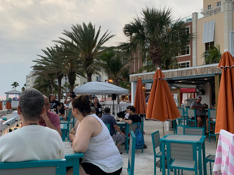 Cabanas 的食物非常美味!份量十足——饮品也很棒!户外酒吧刚刚开放,快去和 Jen 或 Krista 打个招呼吧!他们那里还有现场音乐表演,一直到日落……