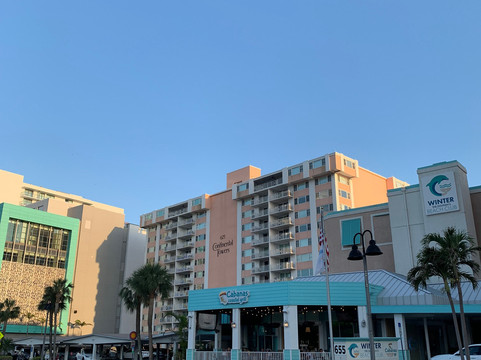 The Winter Dolphin Beach Club is a clean, affordable hotel with a great staff. They provide coffee in the mornings at the front desk and pool towels (make sure you sign them out and back in). The rooms are spacious and clean, with views of the city or the gulf- depending on your room.