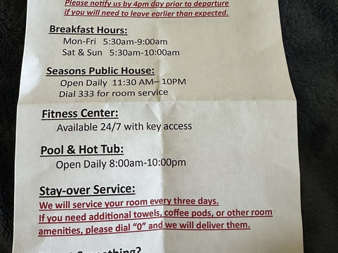 翻译:我们度假时经常入住BW酒店。我们是白金会员。我们强烈推荐您加入奖励计划,非常值得!莫斯科BW酒店是我在爱达荷州最喜欢的酒店!它允许携带宠物,我们入住了一间带两间浴室的特大床套房,起居区宽敞,透过窗户可以看到草坪和盛开的黄色花朵!早餐超级丰盛,每天都很棒!我们超爱早餐,从早上5:30到10点供应!早餐种类丰富!土豆、脆培根、饼干和肉汁是我的最爱。早餐室的工作人员工作非常出色!他非常努力!酒店餐厅很棒。他们有一个漂亮的露台,越橘甜点和杂烩汤也非常棒!客房服务非常出色!我们的房间一尘不染!我们要求多加毛巾,他们很快就送来了!我们一岁的小狗出了点小问题,退房后管理人员非常理解我们。这家酒店的所有员工都非常友好,并且非常关注客人的需求。这家 BW 酒店的管理层做得非常出色!