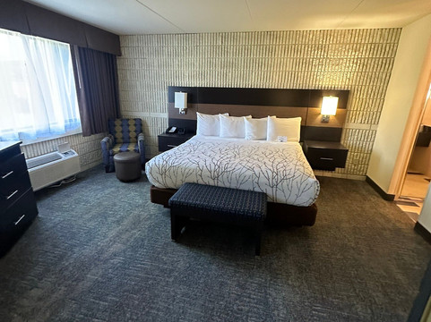 点评:We stay at BW a lot on vacation. We are platinum members. We highly recommend you join the rewards program. Very rewarding. The Moscow BW is my favorite Idaho location! It’s pet friendly and we were able to have a king suite with two bathrooms, large living area, windows looking into the grassy courtyard with beautiful yellow flowers! Breakfast was over the top and outstanding everyday! We love breakfast starts at 5:30am-10am!!! Large variety of breakfast items!! Potato’s, crispy bacon and biscuits and gravy were my favorite. The man who works the breakfast room does an outstanding job! He works very hard! The hotel restaurant is great. They have a nice patio and the huckleberry dessert and chowder was amazing!Housekeeping does an outstanding job! Our room was spotless! When we asked for more towels they were delivered very fast! We had a small issue with our one year old puppy and the management was VERY understanding after we checked out. The entire staff at this hotel is very friendly and is attentive to the guest needs. The management is doing an amazing job at this BW location!